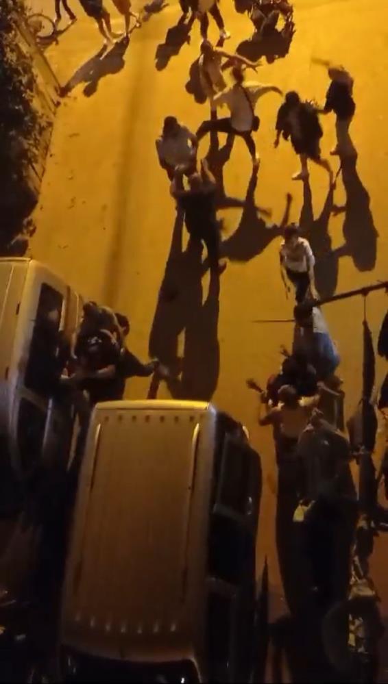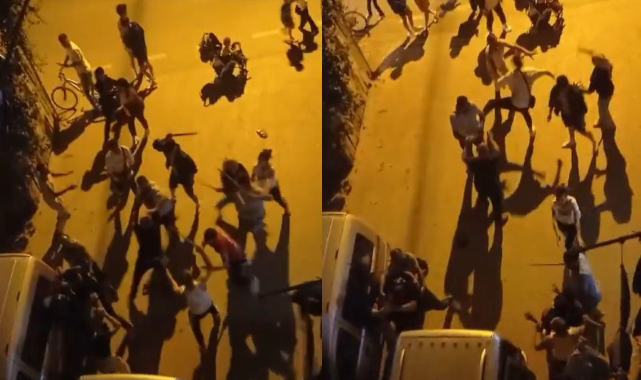 Taraflar konuşmak için sokağa çıkınca, kısa sürede alevlenen tartışma, taşlı sopalı kavgaya döndü. İki grubunda birbirine vurduğu anlar kameraya yansırken, çevredekilerin ihbarıyla, olay yerine polis ekibi sevk edildi.