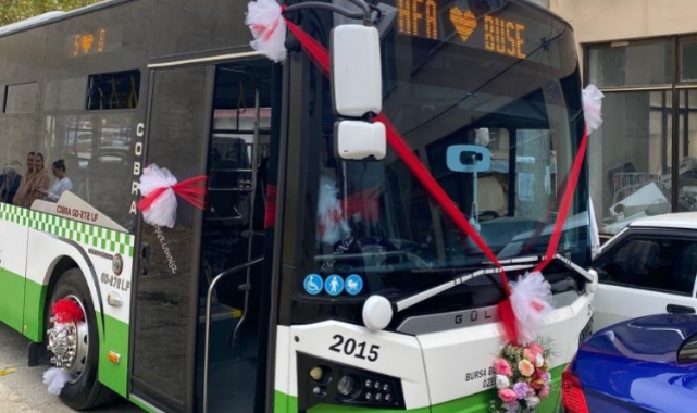 Bursa'nın Orhaneli ilçesinde dünya evine giren Safa ve Buse çiftinin düğün konvoyu ilginç bir görüntüye sahne oldu. Çiftin yakınları tarafından organize edilen konvoyda şehir içi hatta çalışan özel halk otobüsü gelin arabası gibi süslenerek yer aldı.