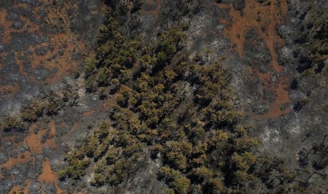 Yangın bölgeleri dron ile havadan görüntülenerek acı tabloyu gözler önüne serdi.