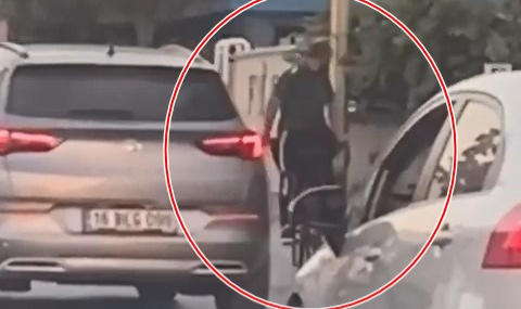 Akan trafikte bisikleti ile ters giden vatandaş kendi canını hiçe saydı.