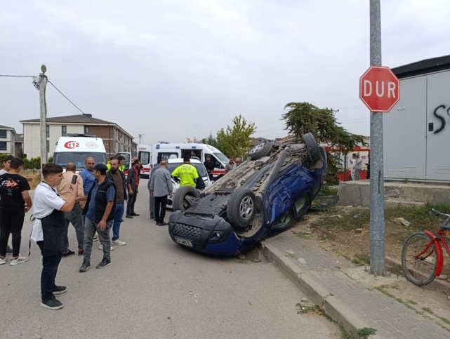 Kaza sonucu suv araç takla atarak ters durdu. Kazada sürücüler ile suv araçta yolcu konumunda bulunan Rabia T. (16) yaralandı.