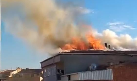 Henüz belirlenemeyen bir nedenle çıkan yangını gören vatandaşlar, durumu İnegöl Belediyesi itfaiyesine haber verdi. Bölgeye çok sayıda itfaiye ekibi sevk edilirken, alevler çatıyı sardı.