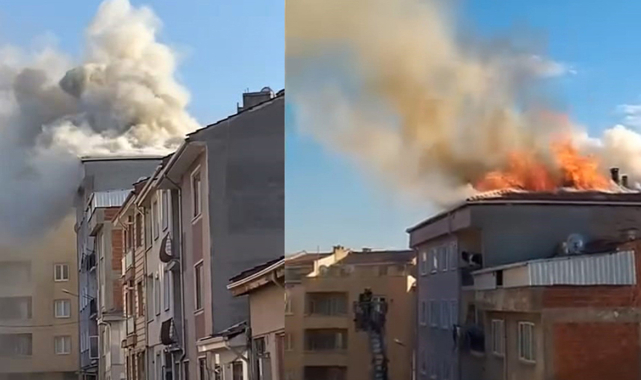 Yangın, saat 17.00 sıralarında Orhaniye Mahallesi Çömlekçiler Sokak'ta bulunan 5 katlı apartmanın çatısında meydana geldi.