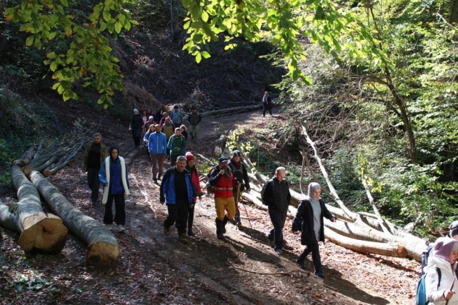 Pazar günleri yapılan ücretsiz doğa yürüyüşü etkinliklerinin bu haftaki güzergahı şehrin doğu bölgesi oldu. Domaniç Orman Deposu bölgesinden başlayan doğa yürüyüşü, Sütlük Yaylasını takip ederek Oylat bölgesinde son buldu. 22 kilometrelik orta zorluktaki parkurda yürüyüşe katılan vatandaşlar, Pazar sabah 08.30’da Hikmet Şahin Kültür Parkı içerisinde bulunan Belediye Spor Salonu önünden araçlarla başlangıç noktasına getirildi. Burada araçlardan inerek İnegöl’ün eşsiz sonbahar manzarasına sahip doğasıyla kucaklaşan doğaseverler, renk cümbüşüne sahne olan ormanlarda unutulmaz bir hafta sonu yaşadı.