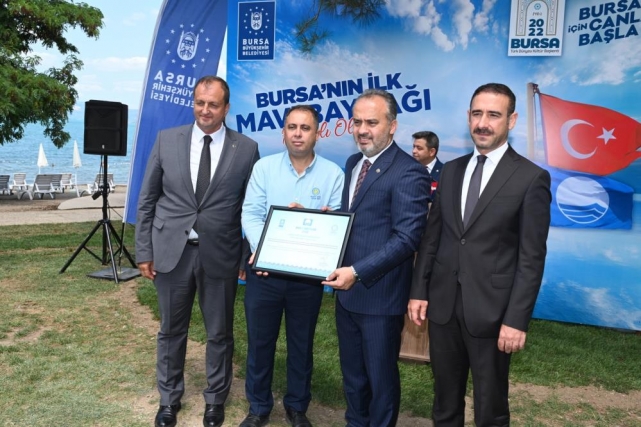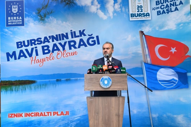 Bursa Büyükşehir Belediye Başkanı Alinur Aktaş, tarih, turizm, sanayi ve tarım kenti olmanın yanında Bursa’nın 277 kilometrelik kıyı bandı ile aynı zamanda bir sahil kendi olduğunu söyledi. Sahile bu kadar kıyısı olup da bu kadar ekiple böyle yoğun bir çalışma yapan başka bir Büyükşehir Belediyesi olmadığını dile getiren Başkan Aktaş, “Marka olmanın belirli doneleri var. Marka olmak için markası tescillenmiş alanlarınızın olması lazım. Daha önce Türkiye Çevre Eğitim Vakfı'na bu konuda müracaat etmiştik. Birbirinden ayrı ve önemli 33 kriteri yerine getirdik ve yüksek kalite göstergesi olan mavi bayrak ödülünü almaya hak kazandık. Sürdürülebilir çevre yatırımlarımızla sadece İnciraltı Plajımız değil, bütün plajlarımıza Mavi Bayrak almayı arzu ediyoruz. Biz Mavi Bayrağı bir sembol olarak görüyoruz. Olaya kısa vadeli değil şu cennet şehri daha da güzelleştirmek adına daha uzun vadeli bakmak zorundayız. Hayırlı, uğurlu olmasını temenni ediyorum” dedi.