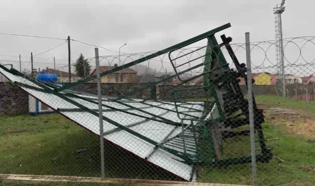 Bursa’nın İznik ilçesinde, İlçe Stadyumu’nda oynanan bir müsabaka sırasında şiddetli rüzgâr büyük bir tehlike oluşturdu. Sert esen rüzgârın etkisiyle misafir tribünü çöktü. Olay anında tribünde kimsenin bulunmaması, büyük bir facianın önüne geçti.