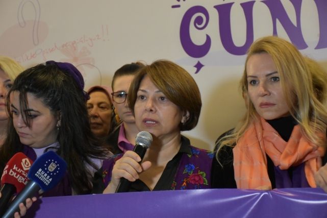 Basın açıklamasını yapan Bursa Kent Konseyi Kadın Meclisi Başkanı Derya Şimşek Aksakal, kadınların yüzyıllardır evlerinde, sokaklarında, iş yerlerinde şiddete maruz kaldığını, kadın cinayetlerinin ise toplumu derinden yaralayan bir gerçeklik olduğunu söyledi. Kadınların maruz kaldığı şiddetin, tarihin başlangıcından beri süregelen bir sorun olduğunu belirten Aksakal, ülkemizde ve dünyada kadın cinayetlerinin her geçen gün artığını ifade etti. Bu cinayetlerin arkalarında bıraktığı derin yaralarla toplumu sarstığını dile getiren Aksakal, “Kadınlar evlerinde, sokaklarında, hatta sığınma evlerinde bile güvende değiller. Geçtiğimiz hafta içinde bir kadın belediye otobüsünde tanımadığı bir adam tarafından bıçaklandı. Kadın ve çocuk cinayet ve istismarları ürkütücü boyutlara gelmiş durumda. Kadın cinayetlerini önlemek için pek çok yasal düzenleme var ancak uygulamada ciddi eksiklikler yaşanıyor. İstanbul Sözleşmesi elimizden bir gecede alındı. Şiddet uygulayan erkeklerin cezalandırılması yetersiz kalıyor, kadınlara yönelik koruma mekanizmaları yeterince etkin çalışmıyor. Tek başına 6284’ün etkin uygulanması bile birçok cinayeti engelleyecektir” dedi.