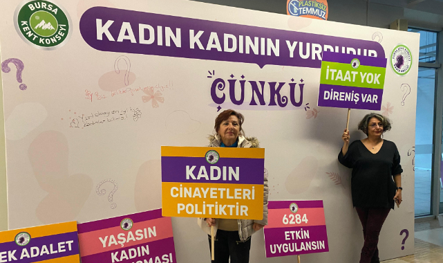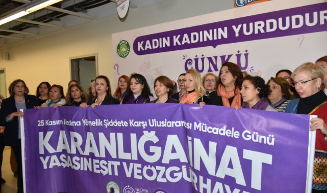 Bursa Kent Konseyi Kadın Meclisi, Nilüfer Kent Konseyi Kadın Meclisi ve Osmangazi Kent Konseyi Kadın Meclisi iş birliğinde 25 Kasım Kadına Yönelik Şiddete Karşı Uluslararası Mücadele Günü kapsamında ‘Karanlığa inat yaşasın eşit ve özgür hayat’ sloganıyla bir etkinlik düzenlendi. Merinos Atatürk Kongre ve Kültür Merkezi Koza Salonu’nda düzenlenen etkinlikte, Bursa Kent Konseyi Kadın Meclis Başkanı Derya Şimşek Aksakal, Nilüfer Kent Konseyi Kadın Meclisi Başkanı Nazlı Ünalan ve Osmangazi Kent Konseyi Kadın Meclisi Başkanı Sevgi Baysal ortak basın açıklaması yaptı. Açıklamanın ardından şiddet türleri ve atölyesi ile bir forum gerçekleştirildi.