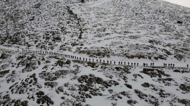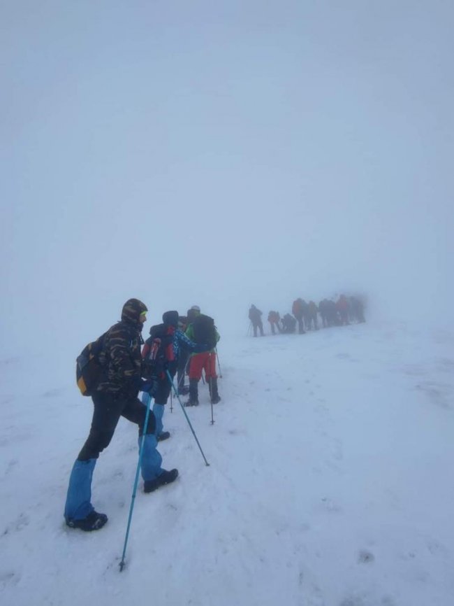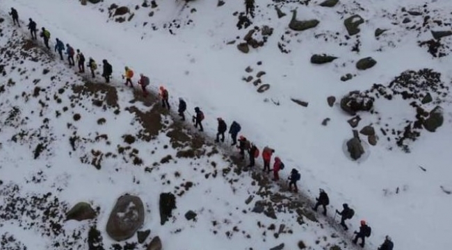 İstanbul, Muğla, Sivas, Ankara, Rize, Erzurum, Kırıkkale ve Bursa’dan 124 dağcı Beden Terbiyesi tesisleri önünden tırmanışa geçti. Eski cip yolu ve Kapı rotasını izleyen dağcılar zorlu hava şartlarının etkisini gittikçe arttırmasına rağmen tırmanışlarını sürdürdüler. Rasat düzü mevkiine çıkmak için Kapı rotasından sırta ulaşıldığında, hareket edilmesini engelleyen fırtınaya maruz kalındığı için dönüşe karar verildi. Bu sırada buzda kayan bir dağcı sürüklenmeye başladığı sırada diğer dağcılar tarafından kurtarıldı. O anlar bir başka dağcı tarafından cep telefonu ile kaydedildi. Tüm bu heyecan ve adrenalin dolu dakikalar yaşansada 124 dağcının drone ile havadan görüntülenen tek sıra halindeki zirve yürüyüşü kartpostalları aratmadı.