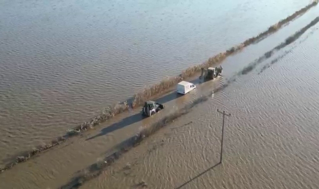 Öte yandan, taşkın nedeniyle binlerce dönüm ekili tarım arazisi de sular altında kaldı. Çiftçiler büyük zarar yaşarken, yetkililer, yolun geçici süreyle ulaşıma kapatılacağını bildirerek vatandaşlara alternatif güzergahları kullanmaları yönünde uyarıda bulundu.