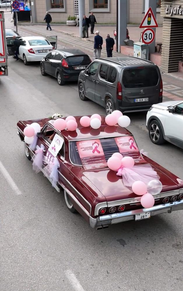 Farkındalık etkinliği kapsamında klasik bir otomobil, pembe kurdele ve balonlarla süslenerek İnegöl sokaklarında gezdirildi. Etkinlikle, vatandaşların meme kanserinde erken teşhisin önemine dikkat çekilmesi hedeflendi.