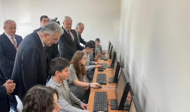 Bilişim sınıfının kurdelası protokol ve çocukların katılımıyla yapıldı. Vali Erol Ayyıldız ve Cumhuriyet Başsavcısı Ramazan Solmaz bilişim sınıfını gezip çocuklarla sohbet ettiler.