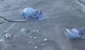Gemlik Körfezi'ndeki sahil şeridi, büyüklü küçüklü mavi denizanalarıyla doldu. Mavi renkli denizanaları yüzmek isteyen tatilcileri tedirgin ederken balıkçılara da zor anlar yaşattı.