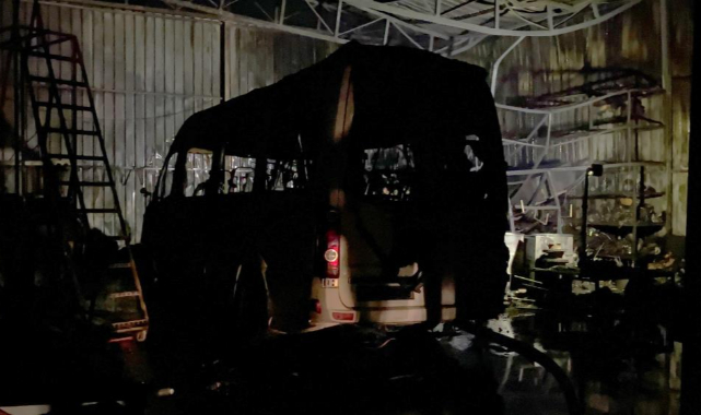 İhbar üzerine olay yerine itfaiye, sağlık ve polis ekipleri sevk edildi. İtfaiye ekiplerinin müdahalesiyle yangın söndürülürken, servis minibüsü ve oto tamir dükkanı kullanılamaz hale geldi. Olayla ilgili tahkikat başlatıldı.