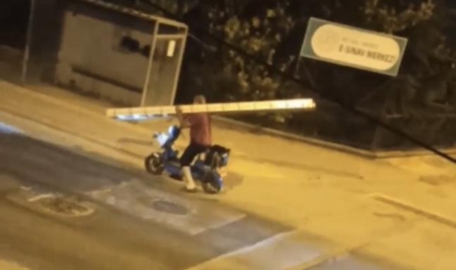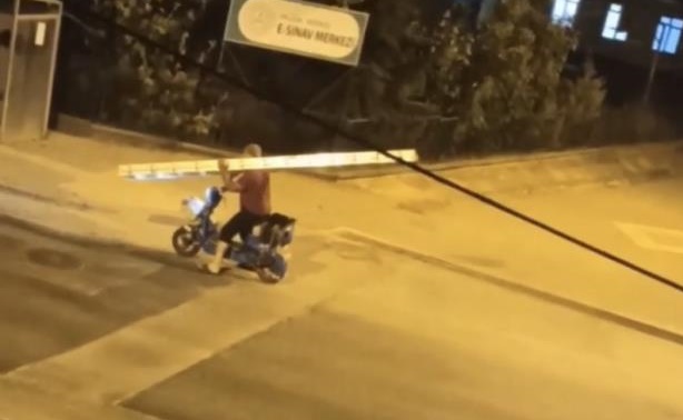 Olay, merkez Osmangazi ilçesinde meydana geldi. Edinilen bilgiye göre, ismi öğrenilemeyen bir sürücü, motosiklette 3 metrelik merdiveni taşımak isteyince motosikleti süremedi.