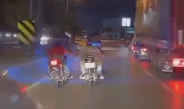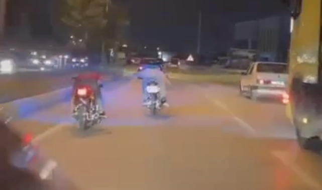 Motosikletli gençlerin tehlikeli yolculuğu kamerada