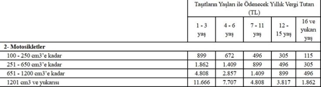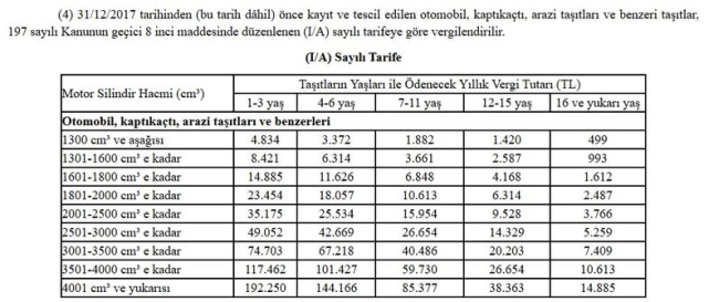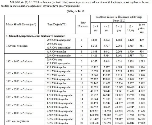 ve 1-3 yaş arasındaki bir aracın yıllık MTV'si 5 bin 803 lira olacak.Bin 300-bin 600 arası motor hacmine sahip, değeri 455 bin lirayı aşan