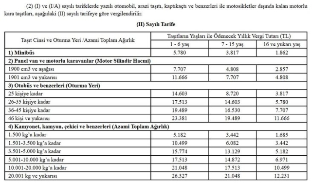 4 milyon 300 bin liraya kadar olan gelirden ise yüzde 35 vergi alınacak.ÖZEL İLETİŞİM VERGİSİ ARTTIÖzel iletişim vergisi ise 2025'te 570 lira olacak.ARAÇLARA GÖRE ÖDENECEK MTV TUTARLARI
