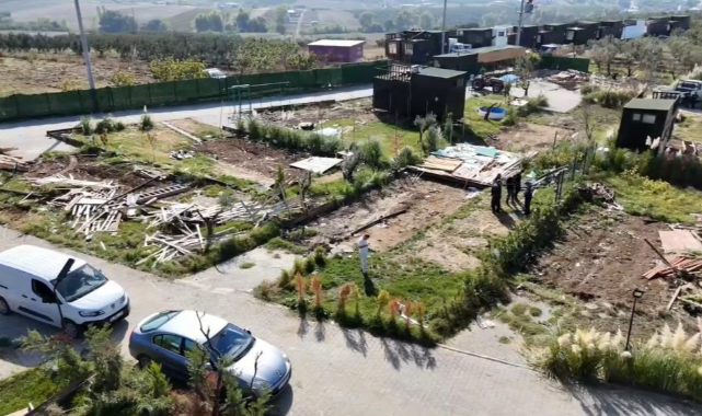 Jandarma ekiplerinin geniş güvenlik önlemi aldığı yıkımda, bazı vatandaşların ise taşınabilir evlerini arazinin dışına çekmeye çalıştı.