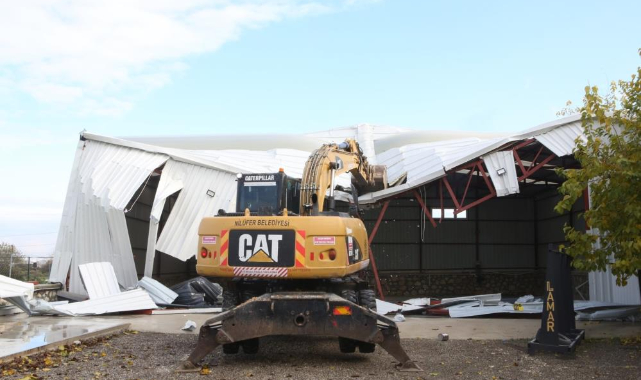 Çalı Mahallesi’ndeki işlemlerin ardından Akçalar Mahallesi’ne geçen ekipler, burada da 700 metrekare büyüklüğündeki iş yerini kısmen yıkarak, kullanılamaz duruma getirdi.