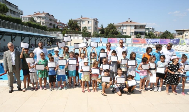 Çalı Yüzme Havuzu ve Konak Olimpik Yüzme Tesisleri’nde iki hafta boyunca yüzme eğitimi alan yaklaşık 800 öğrenci dönemi tamamladı ve sertifikalarına kavuştu. Nilüfer Belediyespor Yönetim Kurulu Üyesi ve Yüzme Branş Sorumlusu Fehmi Gökçen’in elinden sertifikalarını alan öğrenciler mutluluklarını aileleriyle paylaştı.