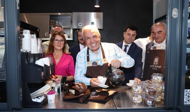 Başkan Şadi Özdemir, manav, et ve şarküteri reyonlarını inceledikten sonra kafe bölümüne geçerek kendi elleriyle vatandaşlara çay ve kahve ikram etti.