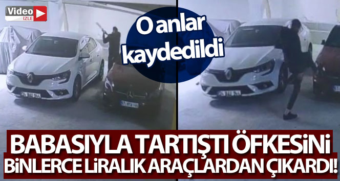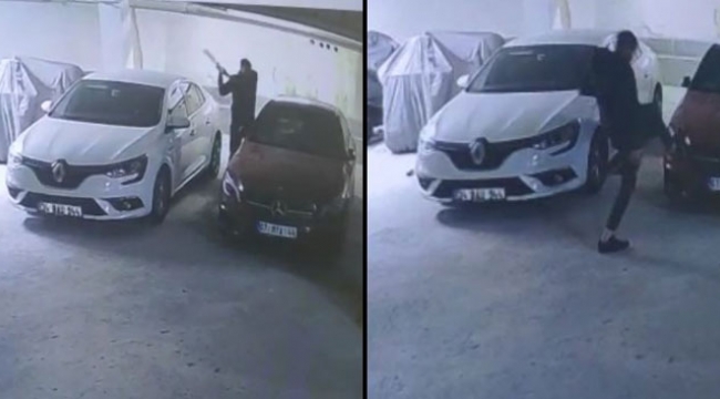 Gencin otomobile sopa ve tekmeyle zarar vermesi ise otoparkın güvenlik kamerasına saniye saniye yansıdı.