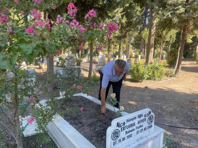 Bursa'da benzeri yokturYamanlı Mahalle Muhtarı Necati Eren, Hüseyin öğretmenin, oğlu vefat ettikten sonra adeta kendini mezarlığa adadığını sadece çocuğunun değil tüm mezarlığa özen gösterdiğini anlattı.