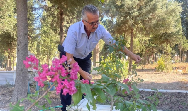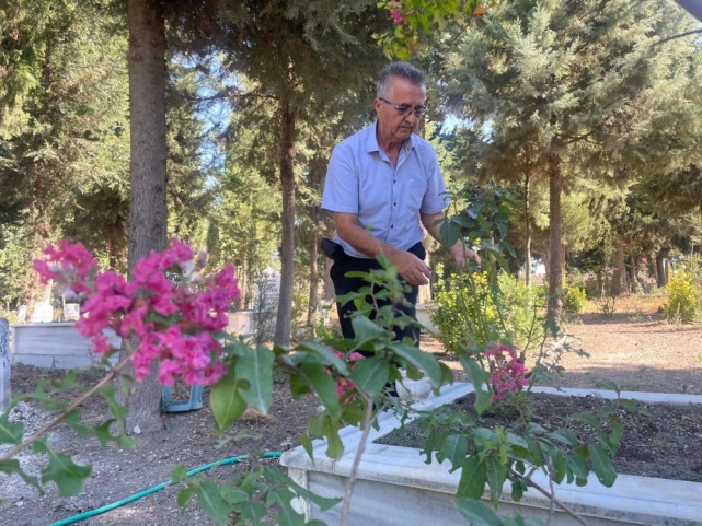 Yamanlı Mahalle Muhtarı Necati Eren, Hüseyin öğretmenin, oğlu vefat ettikten sonra adeta kendini mezarlığa adadığını sadece çocuğunun değil tüm mezarlığa özen gösterdiğini anlattı.