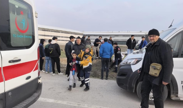 Çarpmanın etkisiyle araçlar savruldu. Kazada her iki aracın sürücüleri ile servis minibüsündeki öğrenciler Elif Su T. (10), Mehmet Yusuf A. (12), Nilhan A. (7), Mehmethan G. (8), Zehra A. (8), Elif K. (7), Semih T. (30) ile rehber öğretmen Gizem A. (24) yaralandı.