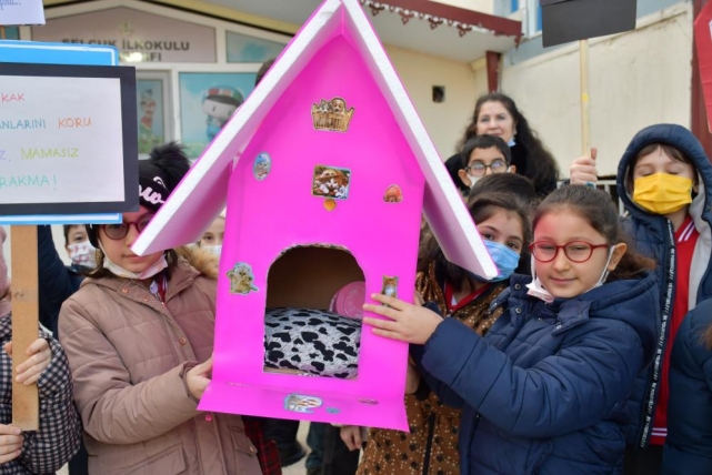 Selçuk İlkokulu 3-B sınıfı öğrencileri, öğretmenleri Ayşe Demircan öncülüğünde soğuk kış günlerinde dışarıda yaşayan hayvanlara dikkat çekmek ve her okula kedi yuvası kazandırmak maksadıyla bir proje başlattılar.