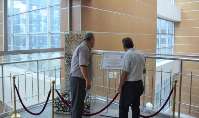 İnegöl Devlet Hastanesi'nde akılcı ilaç kullanımına dikkat çekmek için yapılan bir projede toplanan ilaçlar, her gün tedavi için gelen yüzlerce hastanın dikkatini çekiyor.