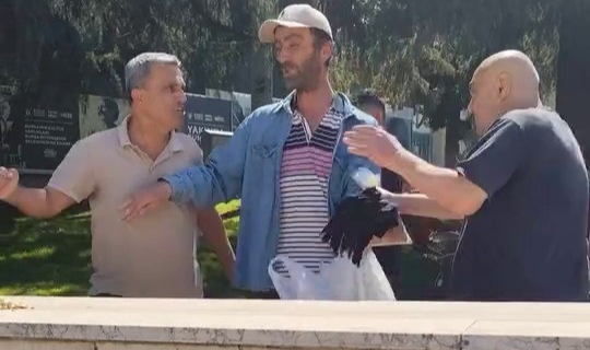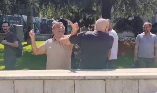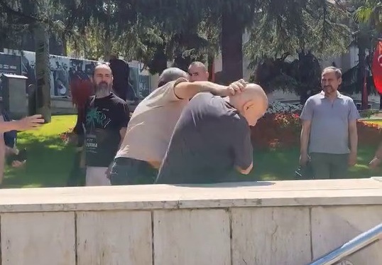 Çevredekiler kavgayı ayırmakta güçlük çekerken, kısa süreli panik yaşandı. O anlar bir vatandaş tarafından cep telefonu kamerasıyla kaydedildi.