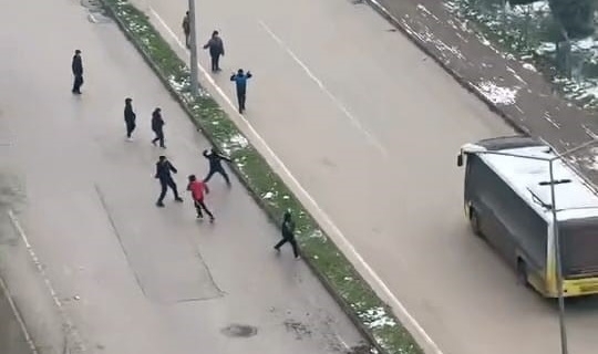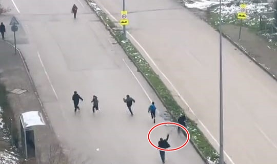 Şoförlerden biri aracını yol kenarına park ederek eline sopa aldı ve çocukların peşinden koştu. Yaşanan kovalamaca çevredeki vatandaşlar tarafından cep telefonu kamerasıyla görüntülendi. Görüntülerde çocukların kaçtığı, şoförün ise bir süre kovaladıktan sonra geri döndüğü görülüyor.