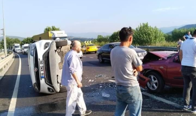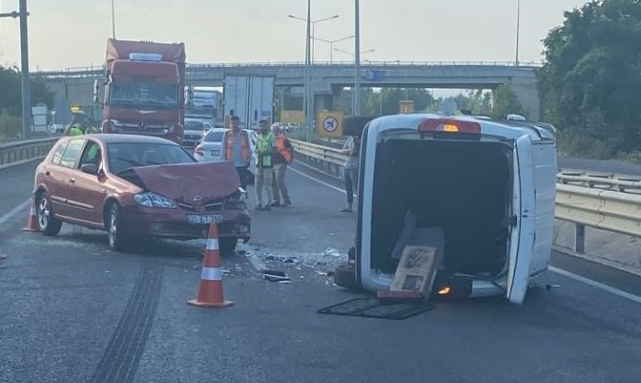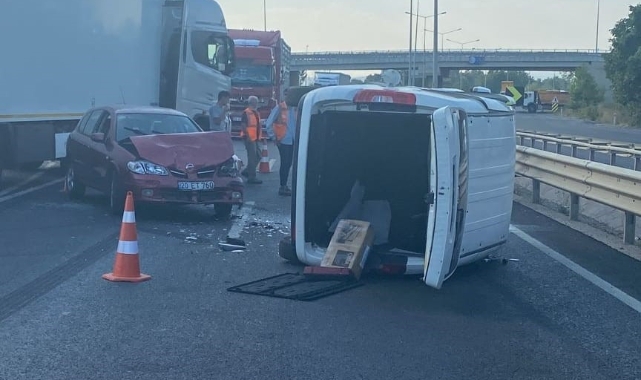 Çarpışmanın etkisiyle hafif ticari araç devrildi. Kaza nedeniyle olay yerine 112, polis ve jandarma ekipleri sevk edildi.