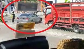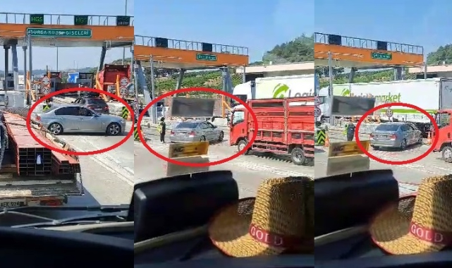 Gişe görevlisi kaza olmasını önlemek amacıyla trafiği durdurdu. Yaşanan anlar ise vatandaşın cep telefonu kamerasına yansıdı.