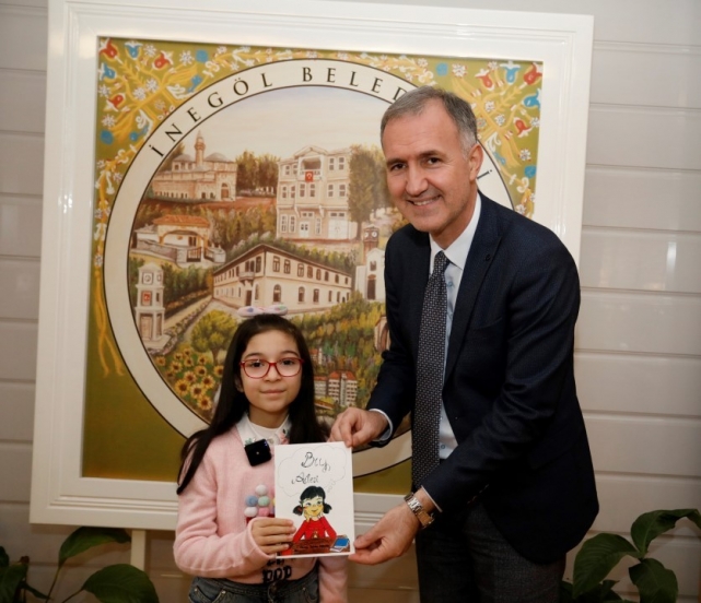 Bugün aynı okulda 3’üncü sınıfta eğitimine devam eden başarılı öğrenci, “Bıy Ailesi” isimini verdiği kitabını sınıf öğretmeni Ceyda Güllüler Ayar ve ailesinin de destekleriyle bastırarak ilk kitabını çıkardı. 20 sayfalık kitabı ile Türkiye’nin en küçük yazarları arasında yerini alan 9 yaşındaki Fatma Dilruba Karataş’ı bu başarılı çalışmasının ardından İnegöl Belediye Başkanı Alper Taban makamında kabul etti. Küçük yazarın eğitim gördüğü Hacer Salih Yıldız İlkokulunun Müdürü Mustafa Zengin, Okul Müdür Yardımcısı Halime Yiğit, Sınıf Öğretmeni Ceyda Güllüler Ayar ve annesi Zeynep Karataş’ın da katıldığı ziyarette, Başkan Alper Taban Fatma Dilruba Karataş’ı cesareti ve başarısından dolayı tebrik etti.