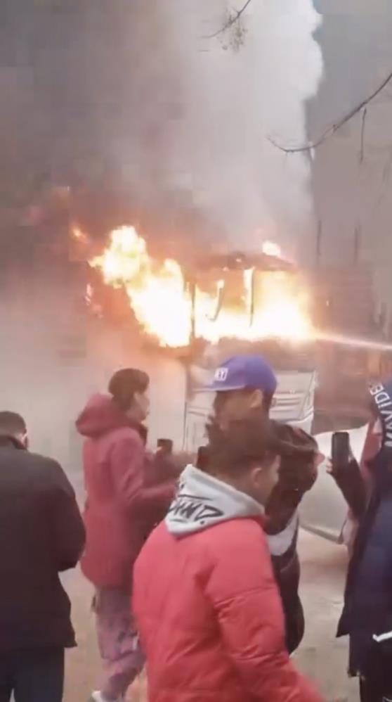 Olay anı çevredeki vatandaşlar tarafından cep telefonu kamerasıyla kaydedildi. Yangının çıkış sebebinin belirlenmesi için inceleme başlatıldı.