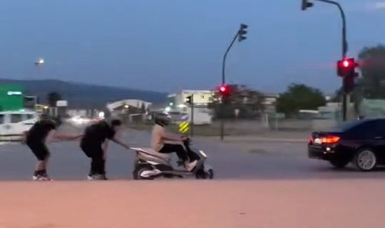 İnegöl-Alanyurt yolu üzerinde 3 patenli genç, hareket halindeki bir motosikletin arkasına tutunarak yolculuk etti. O anlar çevredeki vatandaşlar tarafından cep telefonu kamerasıyla kaydedildi. Yoğun araç trafiğinin olduğu yolda gençlerin bu sorumsuz davranışı, hem kendi canlarını hem de diğer sürücülerin güvenliğini tehlikeye attı. Sosyal medyada kısa sürede yayılan görüntüler büyük tepki topladı.