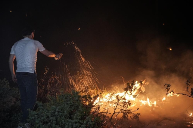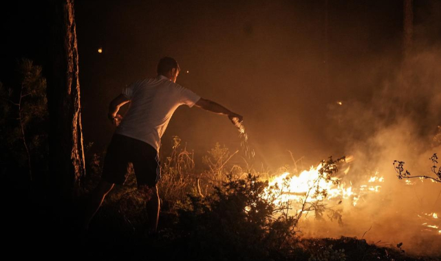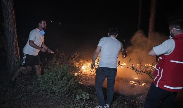 Havanın kararmasıyla birlikte alevler daha da belirgin hale gelirken, yangının oluşturduğu tehlike gözler önüne serildi.