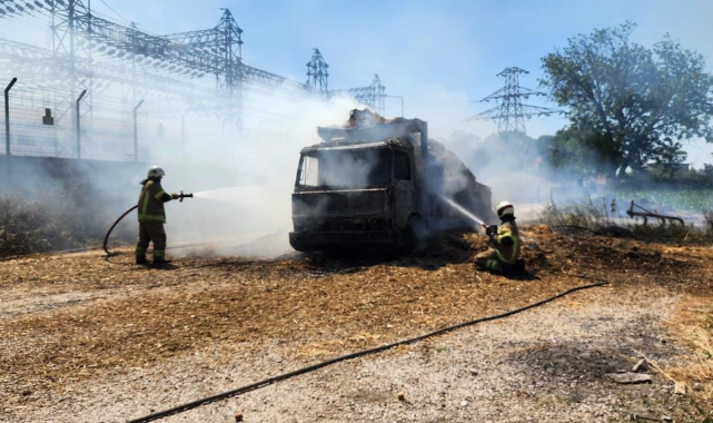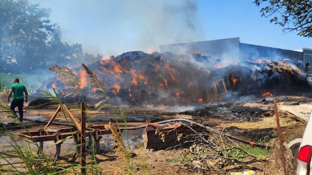 Saman yüklü kamyondaki aşırı yük bir başka kamyona aktarılmak istendiği sırada samanlar alev aldı. Çıkan yangında yük değişimi yapılan 2 kamyon ile 4 traktör römorku alev alev yandı. Alevlere müdahale eden kamyon sürücülerinden İbrahim Meşinci (27) de yaralandı.