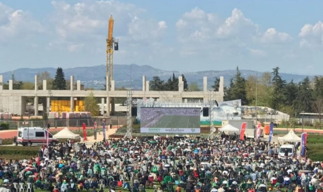 Büyükşehir Belediyesi tarafından kurulan dev ekranda maçı takip eden vatandaşlar, erken saatlerden itibaren alana akın etti. Ellerinde sandalyeleriyle gelen, aileleriyle birlikte yerini alan Bursalılar, 7’den 70’e aynı heyecanı paylaştı. Yeşil-beyazlı renklere gönül veren taraftarlar, tezahüratlarla takımlarına destek verirken, şampiyonluk umudu kenti tek yürek haline getirdi.Somaspor maçı Büyükşehir Belediyesi'nin Millet Bahçesi ve Hüdavendigar Kent Parkı; Osmangazi Belediyesi'nin Osmangazi Meydanı, Nilüfer Belediyesi'nin ise Halk Evi önünde kurduğu dev ekranlardan takip edildi.