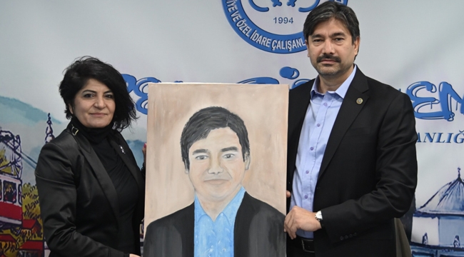 Sendikanın Bursa Şubesi’nin açılışına katılan BEM-BİR-SEN Genel Başkanı Levent Uslu, program sırasında kendisinin yağlı boya bir tablosunu görünce çok şaşırdı. BEM-BİR-SEN’in BUSKİ Temsilcisi Lale Küçük, Genel Başkanının yağlı boyayla resmettiği tabloyu Uslu’ya hediye etti.