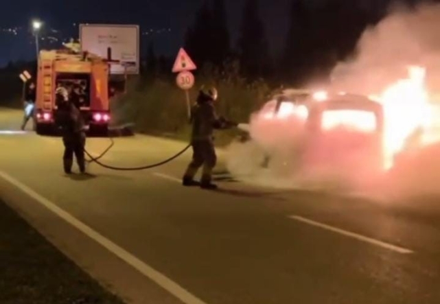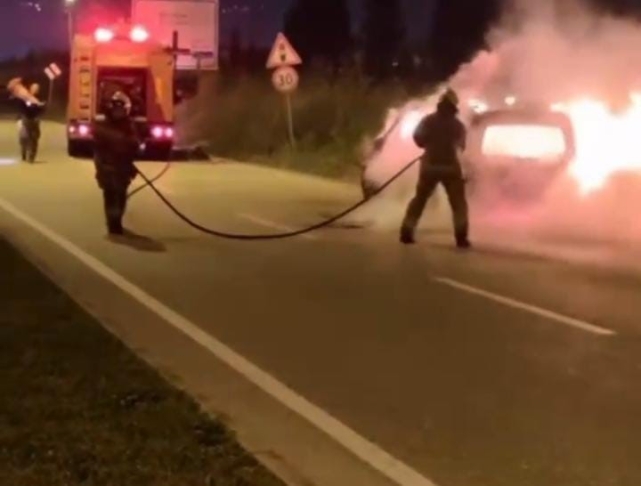 Seyir halindeki sürücü otomobilinden dumanların yükseldiğini fark edip aracını sağ şeride çekti. Alevler kısa sürede aracı sardı. Sürücünün ihbarı üzerine olay yerine itfaiye ekipleri sevk edildi.