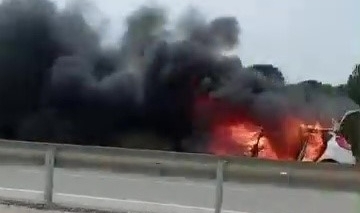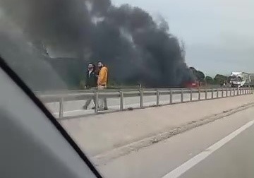 Bursa'da Karacabey-Bandırma istikameti üzerinde seyir halinde olan bir otomobil henüz bilinmeyen bir nedenle alev aldı. Kısa sürede büyüyen yangın, çevredeki sürücülerde paniğe yol açtı.