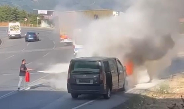 Olay, Bursa’nın Gemlik ilçesi Dürdane rampasında meydana geldi. Edinilen bilgiye göre, dumanlar çıktığını gören minibüs şoförü, aracı kenarı çekti. Aracın motor kısmından yükselen alevler, kısa sürede minibüsü sardı. Yoldan geçen sürücülerin yangın tüpleri ile müdahale ettiği VIP minibüs, kullanılamaz hale geldi.