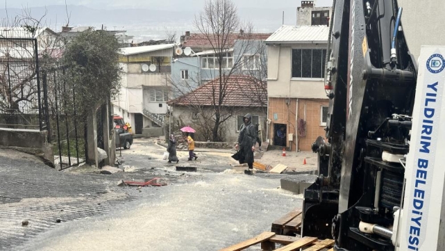 Büyükşehir ve Yıldırım Belediyesi ekipleri mahallede tahliye çalışması başlattı.