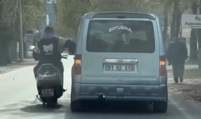 Trafiği ve kendi canını hiçe sayan sürücülerin bu tehlikeli yolculuğu, cep telefonu kamerasıyla anbean kaydedildi.