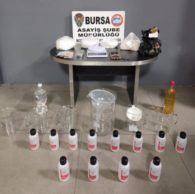 Bursa Asayiş Şube Müdürlüğü, Motosikletli Polis Timleri ekiplerince kentin farklı noktalarında huzur uygulamaları devam ederken, denetimlerin sürdüğü esnada bir taksiden şüphelendi. Taksiyi durduran ekipler, araçta müşteri olarak bulunan Salih R.'nin şüpheli hareketler yaptığını fark edince detaylı arama yapıldı. Şahsın takside bıraktığı poşeti inceleyen ekipler, poşette 672 gram uyuşturucu madde olduğunu tespit etti. Şahsın evinde arama yapmak isteyen ekipler, Cumhuriyet Başsavcılığı koordinesinde Salih R.'nin Yıldırım ilçesi Yunusemre Mahallesi'ndeki adresine de baskın yaptı. Evde arama yapan polis, içeride parça parça toplam 2.5 kilo uyuşturucu madde ele geçirdi.