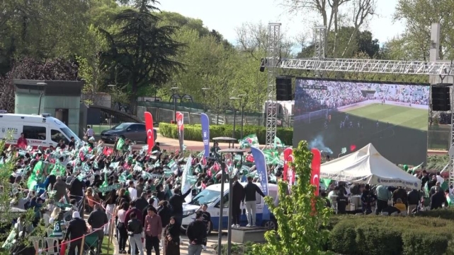 Maçın bitiş düdüğüyle birlikte ellerinde yeşil-beyaz bayraklarla meydanları dolduran taraftarlar, meşaleler yakarak şampiyonluğu kutladı.